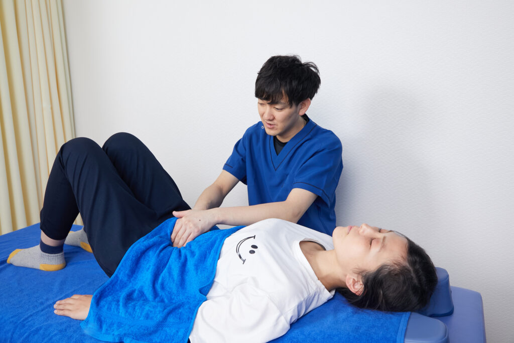 初回は、現在のお悩みだけでなく、仕事、食事、睡眠、日常生活の癖まで丁寧に確認します。そのうえで、股関節の硬さ、骨盤の位置、腹筋の使えなさ、首や肩の緊張などを評価し、原因を整理します。